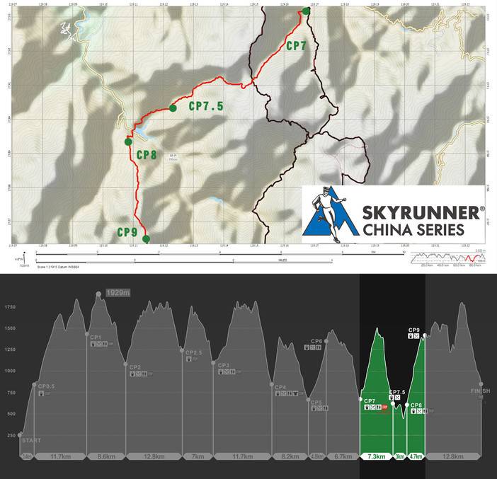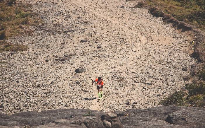 从CP7出发一直到分水岭,是2016年江南之巅的赛道,这一段的特色是巨石河谷,原始而又神秘,是全程第二野的赛段。大部分人抵达这里都已经天亮,危险系数大大降低。翻过分水岭到CP7.5,是“千八”线路的反穿,海拔急遽下降,这一段下坡坡度基本都超过20%,甚至超过30%。都说上山容易下山难,选手要对此有充分的思想准备。