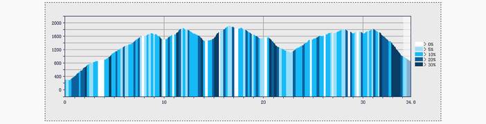 除了个别路段坡度超过30%,和前面的赛段相比,地势总体已放缓。赛道路况也并不复杂,线路简单清晰。再一次千米级别的大爬升,但最虐的部分,尚未到来。