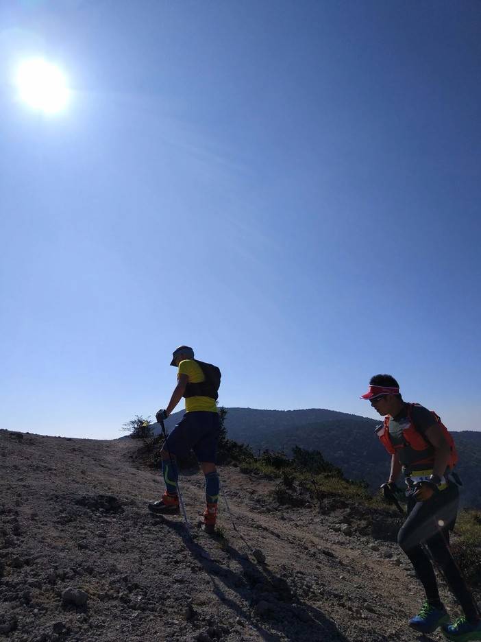 这一段是55k组别的最难部分,前部分的林间穿越,坡度大,路况野,充满了挑战,需严格按照逐个路标前进,切忌偏离路线。这一段的砂石赛道比前一段更加陡峭,下坡几乎全部是“屁降坡”。中途有2处打了路绳的小崖壁需要徒手攀爬。关门时间2小时单独完成是基本不可能的,需要提前积累时间。2017年,90%的退赛选手都是在这一段前后退赛。