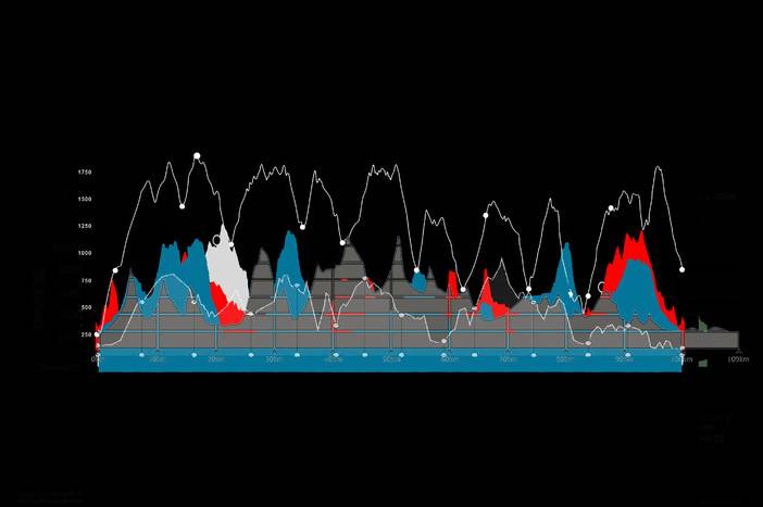 该段是全程少见的“送分题”,从CP4至CP7,共20公里,关门时间6小时,能为后程争取多少时间,这一段下坡便是关键。