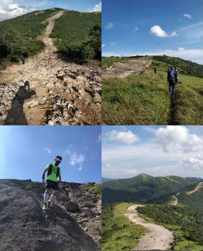 千八官群,一直听跑过千八的老鸟介绍,千八赛道是不停的上下上下,几乎没有路跑,确实如此!盘山公路和机耕道有,但几乎可以忽略,前半程如果路跑超过1公里,建议抓紧看看导航是否偏差。但可以跑起来的路跑段还是有的,最典型的就是黄茅尖下坡,有一步太短两步扯蛋的水泥板台阶,有让人充满奔跑欲望的铺满落叶、落脚舒缓的树林密径,也有传统绵延起伏满是树根暗桩的山脊线或山腰线,防火道下坡是需要考验技术的,陡下坡也许适合大神们飞,但估计也会有不少跑友下坡比上坡还慢。