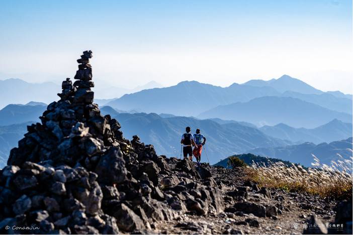 一个就是本次探路线路:驾车起点大寨村-千步梯-凤阳尖-猎户山庄-黄茅尖-麻连岱-烧香岩-防火道-大小天堂-瓯江源-南溪村,全程38公里左右,3300爬升;如果体能好配速快,能够在下午4点前爬上锅帽尖(路陡,太晚即便有头灯也危险不建议上锅帽尖),也可以增加一段瓯江源-锅帽尖-竹林下坡-南溪村,全程42+公里,4000+爬升。中途可以在猎户山庄景区和麻连岱村补给,麻连岱村农户很少,需要提前一天联系驴友之家老叶(联系电话13575370408)预定面食稀饭或饮料,黄茅尖下山和锅帽尖沿途都有山泉水,补给也不失为一个好方法,唯一缺点,凤阳山景区内需要另辟线路避开景区收费。