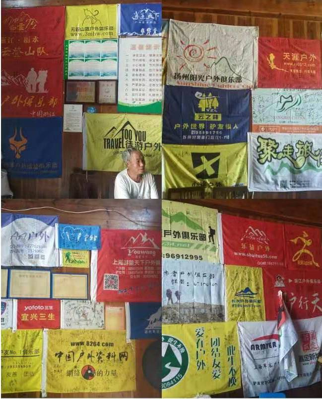 驴友之家满墙都是越野及户外俱乐部旗
