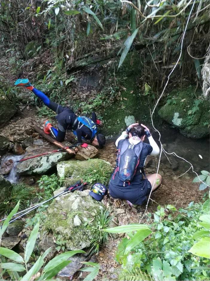 总之千八路跑且行且珍惜,赛事百公里32小时关门,平均3.5公里/小时左右,根据老鸟经验,到55公里横溪村换装点至少14小时内玩成,强烈建议13小时内玩成,否则后半程基本会被各种爬升拖垮。最佳方案是持续匀速爬升,减少补给休息时间(每个补给点停留不多于5~10分钟),才有玩赛可能。出了补给点基本都是上坡,边走边吃是个不错的选择,但绿色环保随身携带垃圾要始终牢记。较少的路跑段是弥补慢速爬升的最佳途径,但路跑不要太快,否则会过早耗尽腿力,千八讲究的是均匀分配体力,因为大爬升都在后半程。另外建议挑一双包裹性强的越野鞋,因为下坡需要前脚掌和脚趾来缓冲,如果包裹性太差,来回摩擦,一旦脚掌或者脚趾起泡,关门事小,去下撤点都是一个非常痛苦的经历。