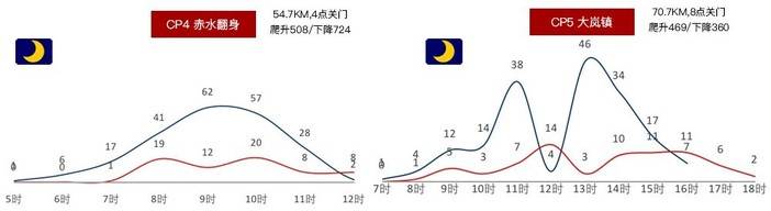 左图:大部分选手在1-2小时通过了CP1,亦有极少数选手通过CP时已接近3小时的关门时间