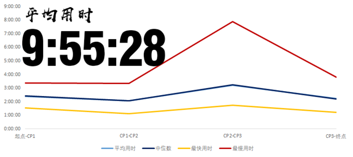 CP1的数据与百公里相同,大多数选手抵达时间亦相同,不再赘述。