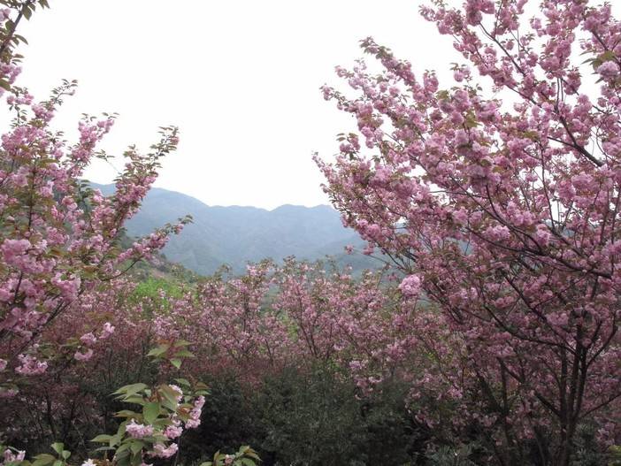 目前,四明山区人工栽种的大量樱花树苗不是宁波的乡土树种,而是从日本引入的观赏树种。开单瓣花的东京早樱的花期与本土的野樱花的花期相重合,都在3月20日前后为盛花期,东京早樱的花朵呈白色。而在4月份开花的日本晚樱为重瓣花花木,数量远超东京早樱。整个四明山区栽种的樱花树苗绝大部分是日本晚樱。日本晚樱开花时,山上已经有其它许多野花同时开花,到处可见姹紫嫣红的春花灿烂地绽放,成片成片的粉色晚樱开花时,让人犹如置身花的海洋,这时是四明山上最美丽的季节。同时四明山的春天真的来到了。