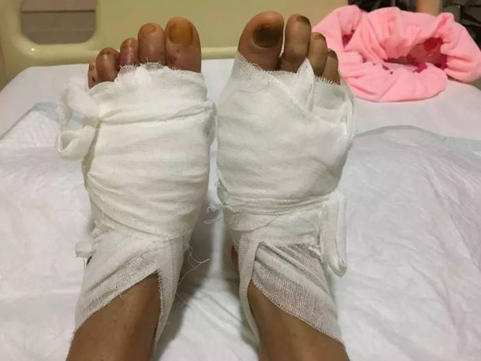 ▲手术前脚部有所变形