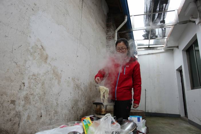 氤氲的热气,也遮盖不了义工为选手服务,来自内心的快乐。