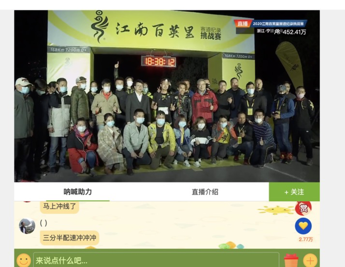 最终,在2020年4月11日凌晨,人们也见证了江南百英里全新赛道纪录的诞生——18小时35分45秒。而此次赛事也获得了450万的浏览关注,浙江省体育局副局长李华更是深夜特意从杭州莅临,迎接赵家驹凯旋归来,直至颁奖典礼结束,又深夜辗转而归。