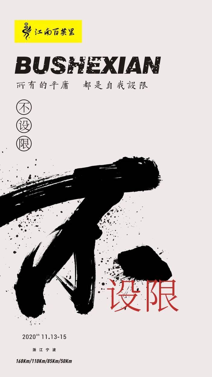 第六回江南百英里越野赛,将于2020年11月13日至15日在浙江宁波举行。赛事设置168/110/85/50Km四个组别,其中168Km设100KmPacer(陪跑)。赛道经5年优化,气候承载力极强,2019年百英里组别完赛率高达80.5%,是国内完赛率最高的百英里赛事,让更多的人到达终点。