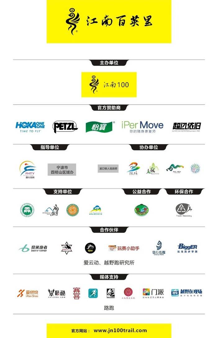 合作伙伴:江苏门派、杭跑会、苏州浆果跑者社区、宁波途格乐户外、宁波骁行户外、越野跑研究所、笨影像、玩赛小助手、爱云动、优徒、赛会通、骁行传媒