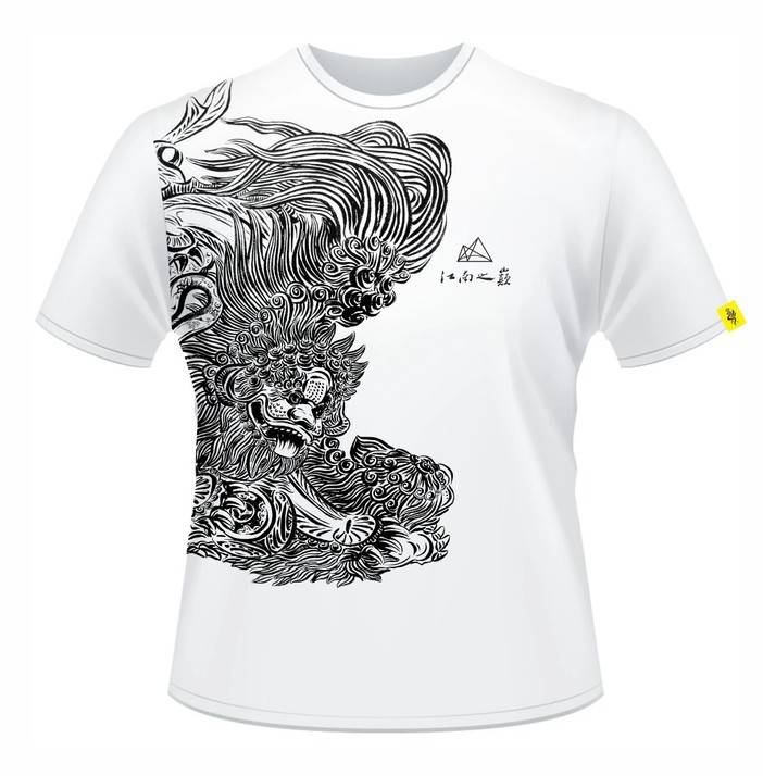 2020江南之巅参赛T恤主要视觉元素为狮子造型,狮子源自于中国传统建筑牛腿木雕,黑与白的融合之下,一种酷我和个性的生命力开始萌芽,这也与江南之巅的登峰造极精神有异曲同工之妙。衣服选用了冰瓷棉这款高档面料,95%棉,5%拉架,这样的搭配,让它保留了纯棉的舒适度,柔软亲肤,也具备了独特的凉感。面料表面像冰瓷一样平整和光滑,带有丝丝凉意,夏天穿,能让体感温度降低3-5度,不闷不热特清爽。