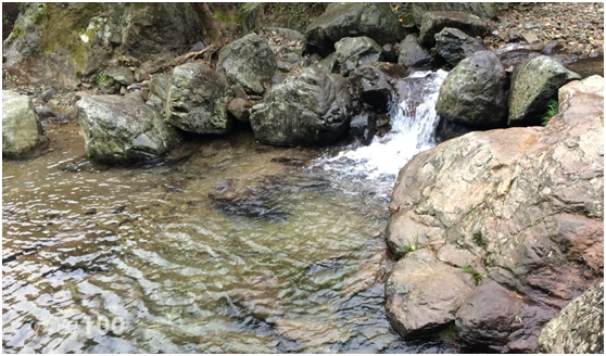 下了山之后,依旧有小溪一路伴随,山里的小溪和山底的小河终于汇合了。而我们将踏上一段泊油路,约一公里左右,又将进入越野的路。进山之前会有一段宽敞的土路让我们可以小跑一段。不过越野嘛,总是要上山的,那么随之而来的山就在前面了。