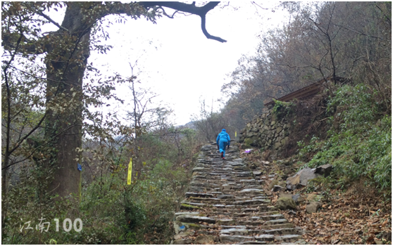 从CP2(栖霞坑村)开始,有2公里左右的路线至山顶,这一段累计爬升约300米。多以台阶为主,不过一路都有小溪陪伴,清澈见底的溪水,像音符一样欢快的流淌着。这一路还有四季常青的竹林,加上有一定年轮的老树和小树的陪衬,这时我们已经身处无人之境,感受到江南的一点点在普通不过的风景了,而真正精彩的还在后面等着。
