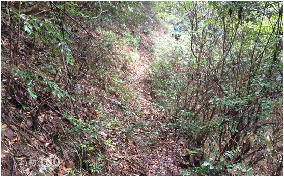 而随后的路段,有连绵不断的防火道,一上一下。不过南方这样的山上一直都有泥土加树叶混合在一起,不会太滑。而这些防火道略有一些陡峭,对于普通选手来说可能要漫步蹒跚上下坡,对于越野高手,可能会非常喜欢这样的防火道,因为他们都会凌波微步一般飞奔下山。这样的路段可能会让很多选手又爱又狠。