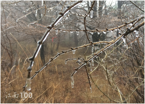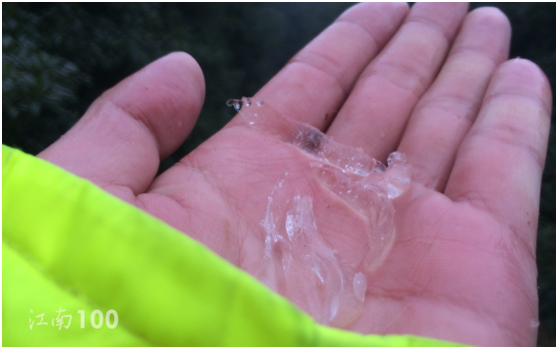 随着不断的爬升,雾越来越大,海拔越来越高,树枝上多结满了冰。同时加上下着冰雹,山顶上越来越冷,至少在零度以下。因为早有准备防水雨衣和保暖的衣服,但在这里还是很冻手,一起测试的跑友因为太冷,结果手都冻破了。以个人一些越野经验,不管在任何越野比赛中,经历多被一些保暖和防雨衣服,绝对不会吃亏的。尤其一旦比赛开始,进入山里后,就没人能帮你。能帮自己的只有提前多做准备,以防万一。