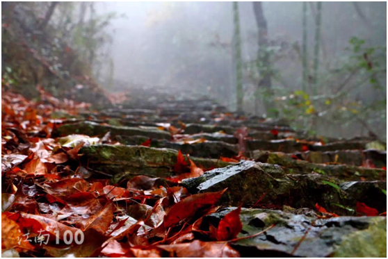 当你看到这样的石板路时,千万不要惊慌,下山的路还是要一步一步踏稳了。而在4月份正好是雨季,如果正赶上下雨,那就更要小心一点了。当然,我也希望那天是晴空万里,这样就不会打滑了,而且还可以看到江南美丽的群山。如果是起一点小雾,那就太完美了,你眼前的群山就会像一幅真得泼墨山水画了,而你就身在画里。