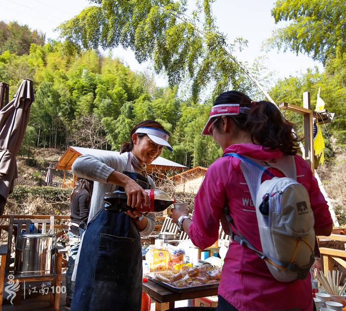 跑出柿林村就是一条长长的穿行于竹林的石阶古道,下得山来就到了设在风景如画的丹山赤水景区内的CP点,江南美食任你挑选,漂亮的志愿者妹子热情为你端茶倒水,面对如此美景,可别迈不开前进的步伐哟!
